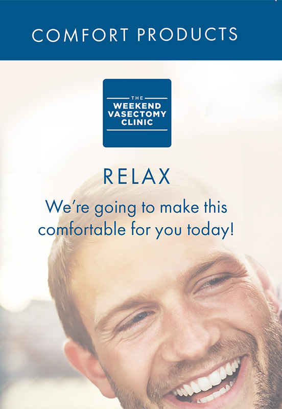 This brochure provides information on the comfort products available on the date of their vasectomy and throughout their recovery period.